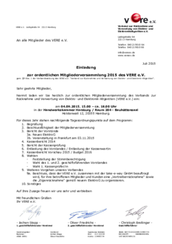 Einladung zur ordentlichen Mitgliederversammlung des VERE e.V. 2015