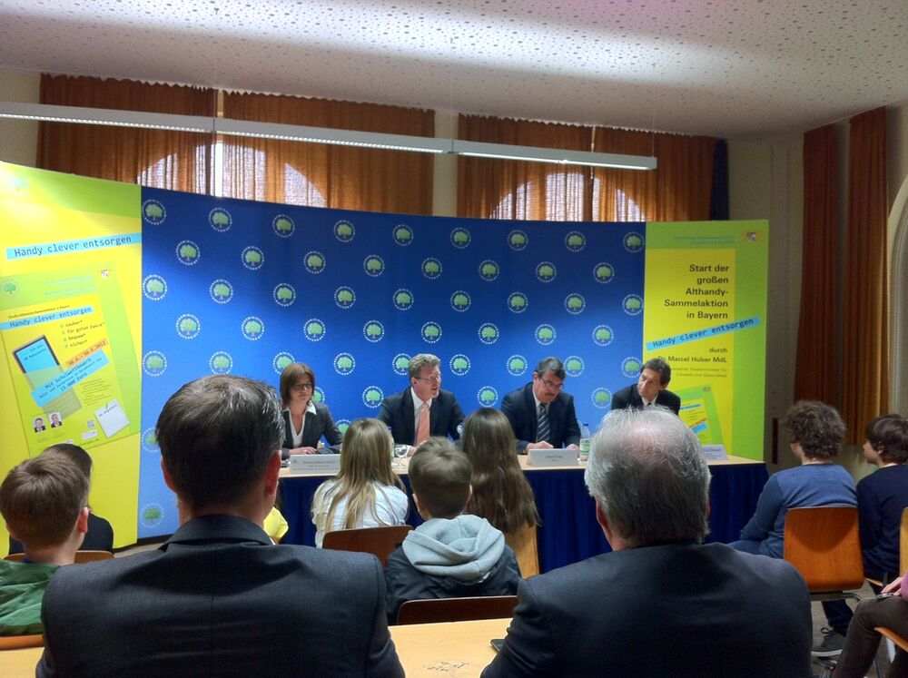 Die Sammlung startete nach der heutigen Pressekonferenz des StMUG im Oskar-von-Miller-Gymnasium in München-Schwabing, auf der Staatsminister Dr. Marcel Huber das Gesamtkonzept der Alt-Handysammlung vorstellte.